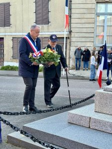 Monsieur le Maire, Jean-Alain Charpentier, et Bernard Garnier (Souvenir Français) ont déposé une gerbe au monument aux morts. La jeune Léane a également lu l’ordre du jour, incluant un hommage aux Harkis.